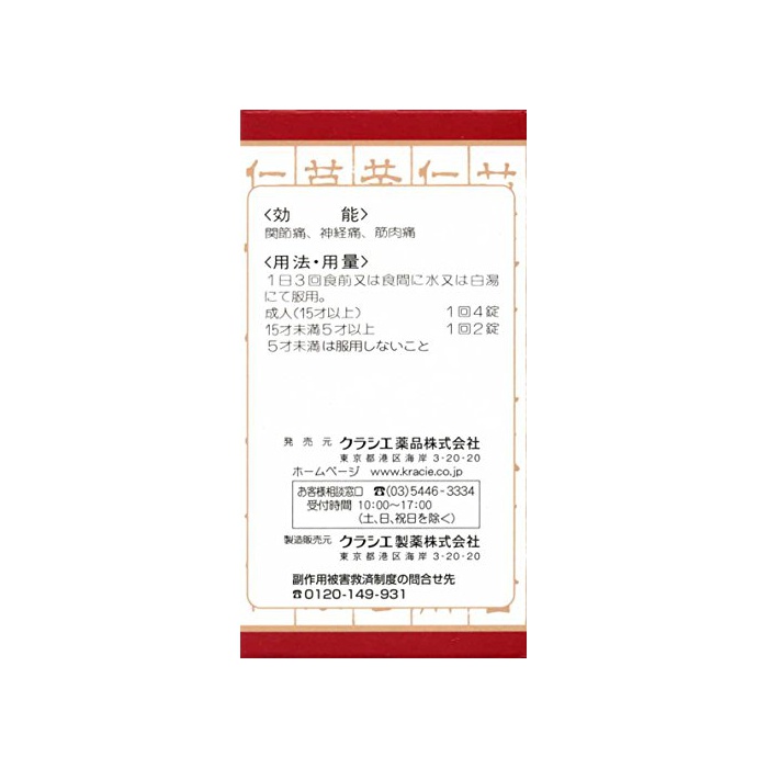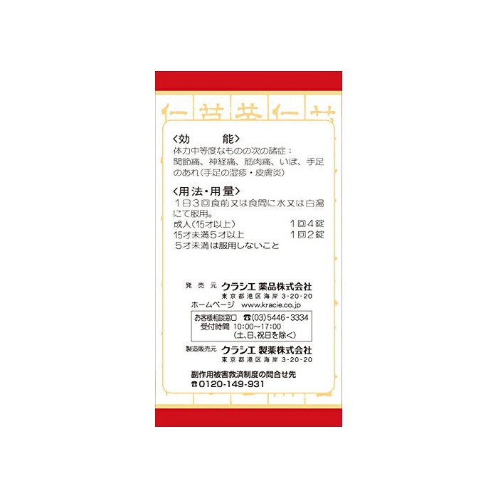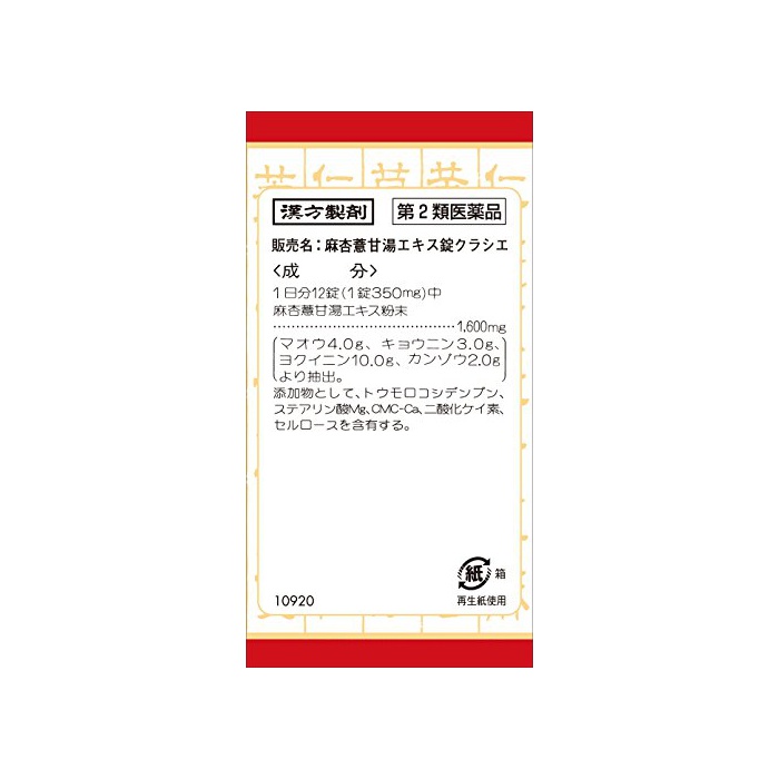 원본상품명: 【第2類品】麻杏ヨク甘湯エキス錠クラシエ 180錠