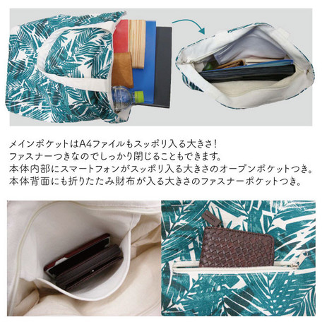 シンプルですが本体天部にファスナーもついており、しっかり収納ができます。