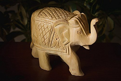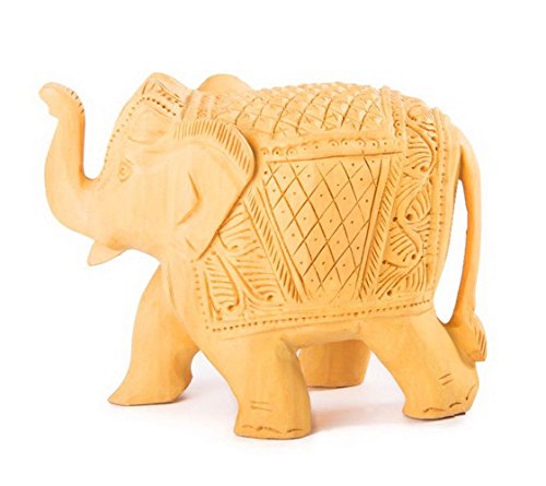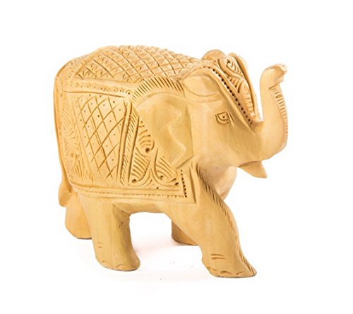 StarZebra Elephant Statue 5.5" X 4" Hand carved Wooden Figurine of Elephant Unique Sculpture with Trunk Up