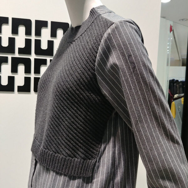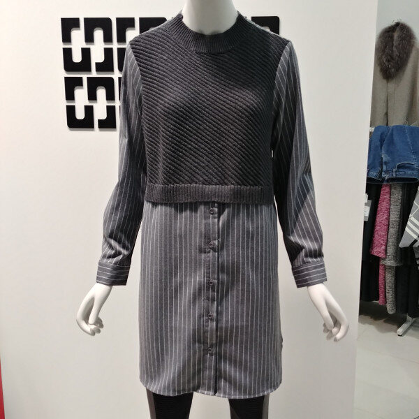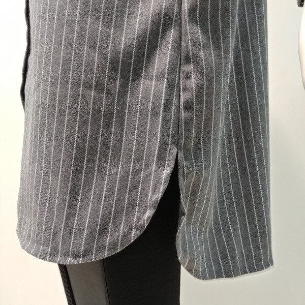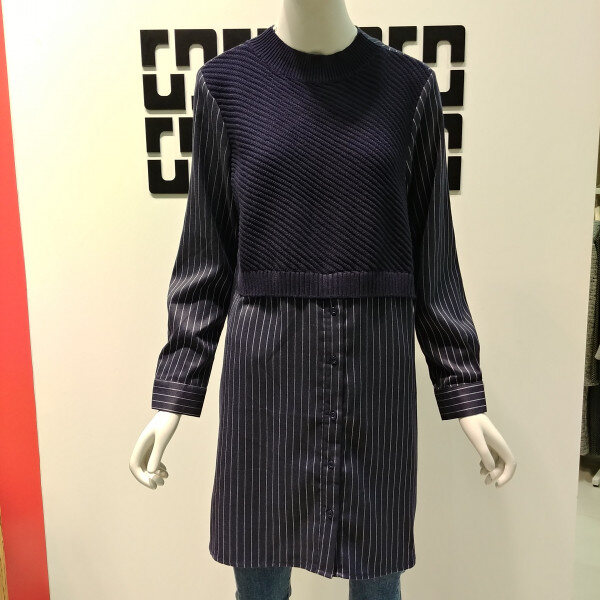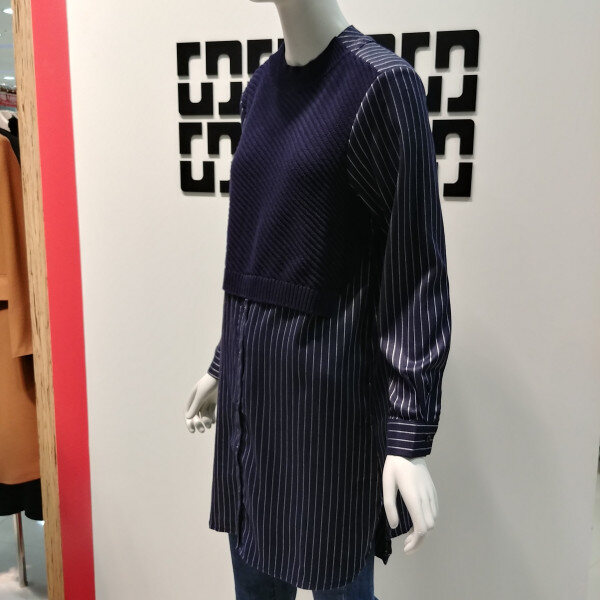 니트 베스트와 블라우스를 코디한 듯한 멋스러운블라우스 입니다 무릎 살짝 위로 오는 기장으로 멋스럽게입기 좋고 케쥬얼한 룩으로 데님과 함께 코디하여 착용하면 멋스럽습니다 스트라이프 패턴이 들어가있어 코디하기 용이한 상품입니다 32 인치 기장 입니다