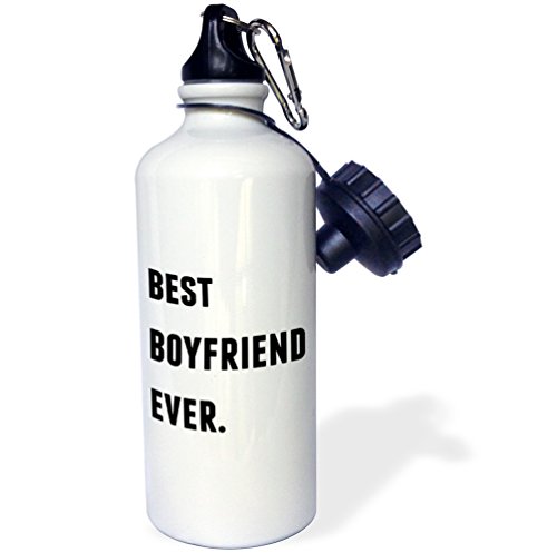 3dRose Best Boyfriend Ever, Black Letters on A Background Sports Water Bottle, 21 oz, White
