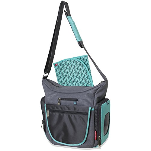 This bag features a padded and adjustable cross body shoulder strap, a roomy interior and oodles of handy zip-up pouches and pockets to keep all of Baby's must-haves safe an secure on-the-go. An easy-clean changing pad makes diaper swaps a breeze anywhere you are.Feature