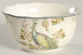 222 Fifth Empress Garden Peacock Pattern Soup Cereal Bowl Set of 4