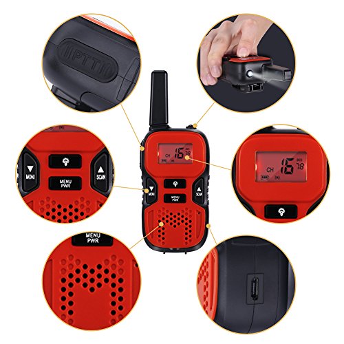 Best Gift for age 3 up --- Channel scan, Channel lock, Low battery alert, Simply press PTT key to talk using built-in microphone and stay connecting with your friends and families especially in outdoor activities.