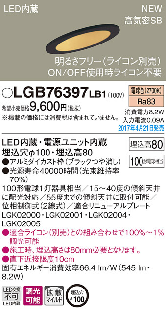 ●寸法(mm):埋込穴φ100・埋込高80