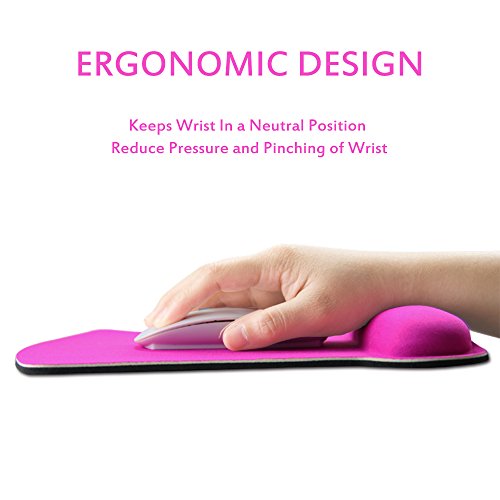 Exco-Wrist protected Personalized Computer Decoration Memory Foam Wrist Rest Mouse Pad Ergonomic Office Wrist Support Design Non-slip Rubber Base Gel Mouse Pad (Pink)