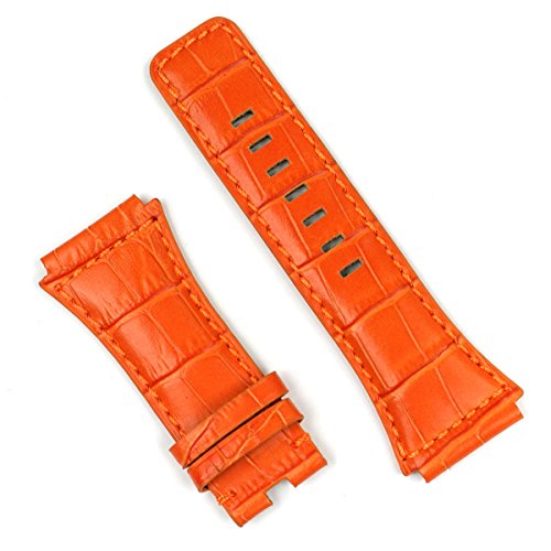 Top grain leather embossed to look like alligator skin. Padded strap 4mm thick tapers to 3mm. 6mm holes to fit original buckles. Takes 24mm buckle. Painted edges. Fully leather lined. Measures 115/75 mm. Self stitch design.
