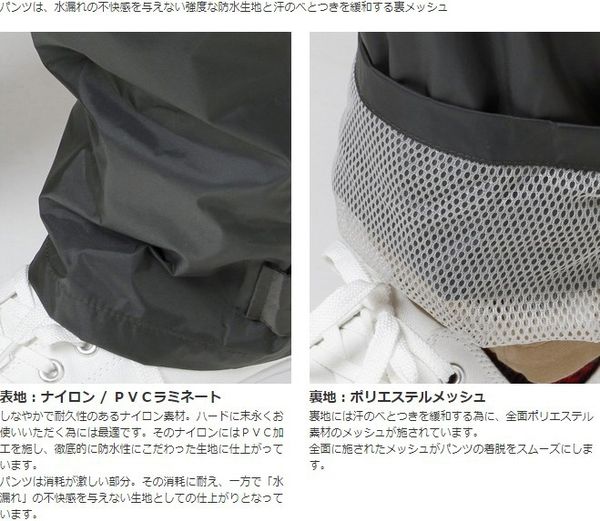 ●ジャケットとは異なる素材を採用したレインパンツ 雨先案内人レインパンツです。是非、組み合わせてご使用ください。