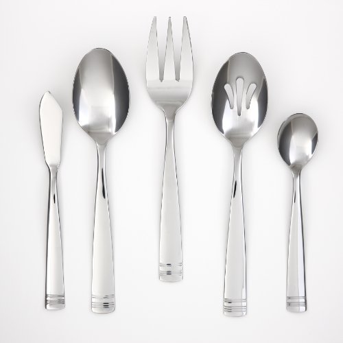 - Service for 12 includes: 24 teaspoons and salad fors, 12 each: dinner fork, dinner knife, dinner spoon (2) serving spoons, and 1 each: serving fork, slotted spoon, butter knife and sugar shell
