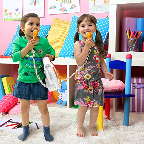 DUAL MICROPHONES - Two kids would be able to sing together. Each with their own on/off switch and volume knob for the kids to control it themselves.