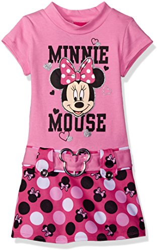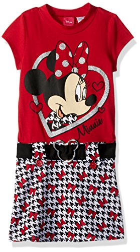 Disney Little Girls' Minnie Mouse Drop Waist Dress with Belt, Red, 6