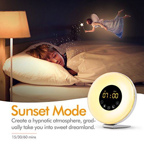 Description: NakaLight Wake Up Light is a multifunctional device, which can be used as alarm clock, lamp and radio.This Sunrise Alarm Clock is ideal for Heavy Sleepers who find it is difficult to wake up in the morning or fall asleep at night, a considerate gift for friends and family! ? Features: - 1.Snooze function