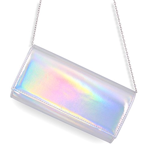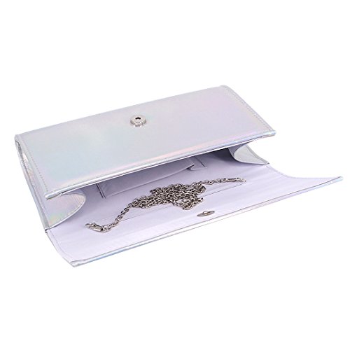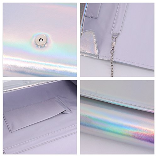 -. Brand : Naimo -. ClothingSize : one size -. Department : womens -. Feature : Please read the size carefully before order / Bag Dimensions: 11.25 in (L) X 2.2 in (W) X 6 in (H) / Magnetic snap closure / A Shiny beautiful bag for fancy events,evening out,birthday party and weddings / Package included: 1* bag with detachable chain -. ProductGroup : Shoes -. ProductTypeName : HANDBAG -. Size : One Size -. Title : Naimo Shiny Holographic Pu Evening Clutch Bag Envelop Bag