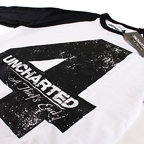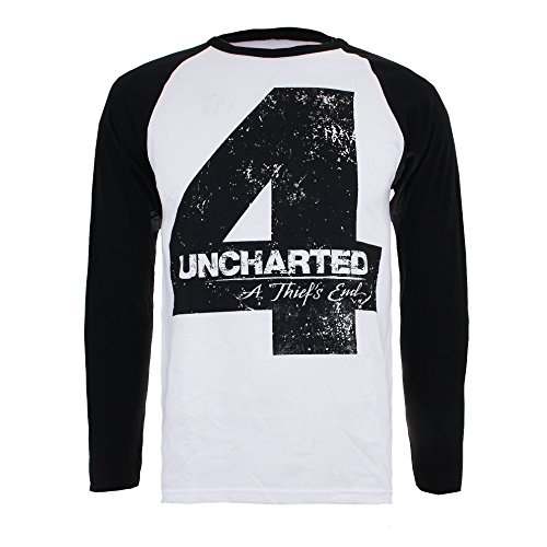 -. Title : Unchartered 4 Herren 4-Distressed 4 Logo-Mens L/S Baseball T-Shirt Sml, Weiß (White/Black), Small