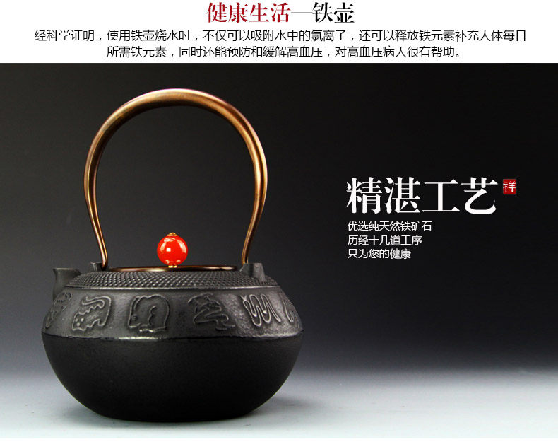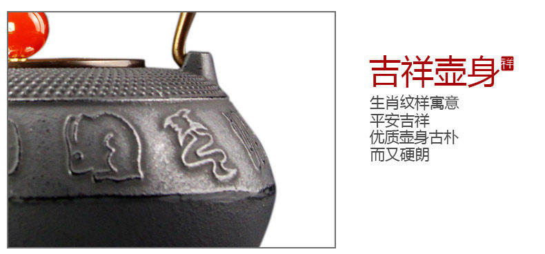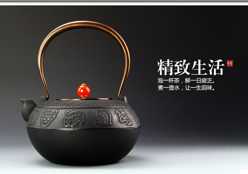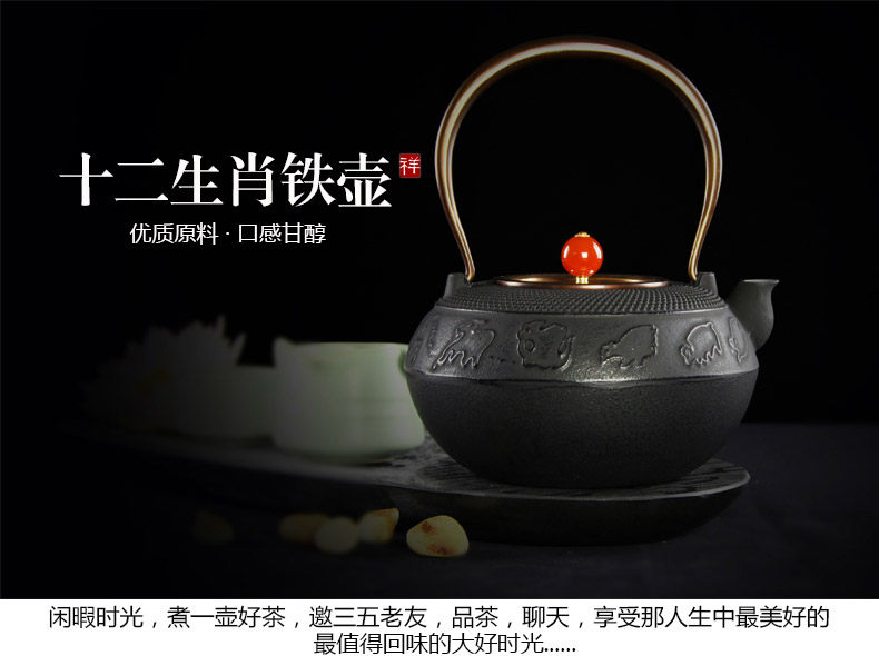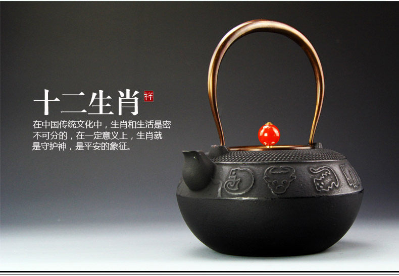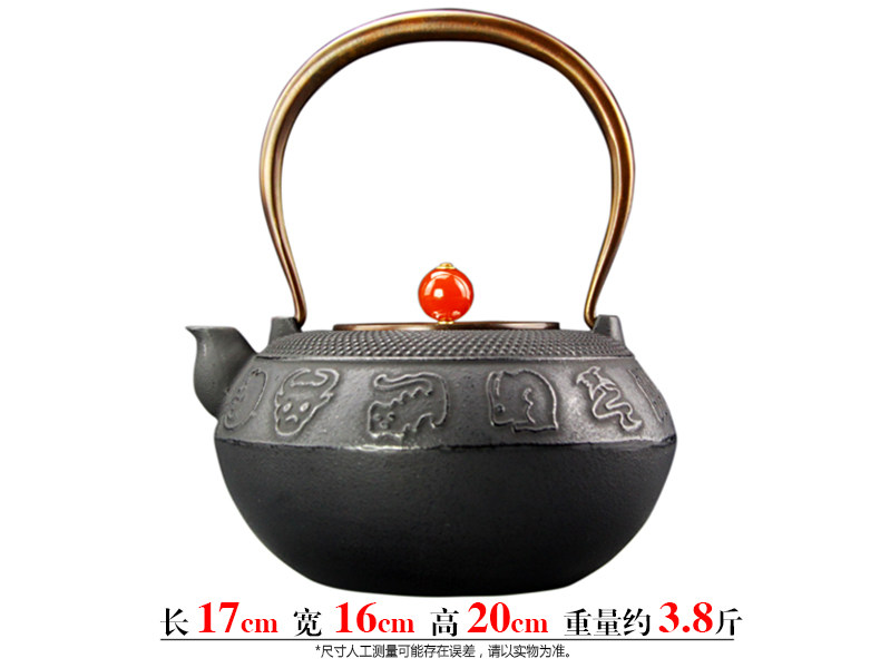 铸铁壶十二生肖老铁壶 铜把铜盖生铁水壶 无涂层铸铁茶壶