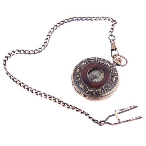-. Title : Skeleton Pocket Watch Chain Mechanical Hand Wind Vintage Zodiac Design Full Hunter Value Quality - PW15