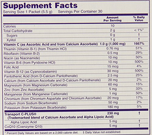 Provides 1,000 mg of Vitamin C including Transport C-PLUS, a buffered form combined with Alpha Lipoic Acid (known to help the body regenerate Vitamin C) for fast assimilation