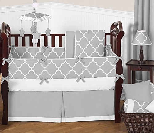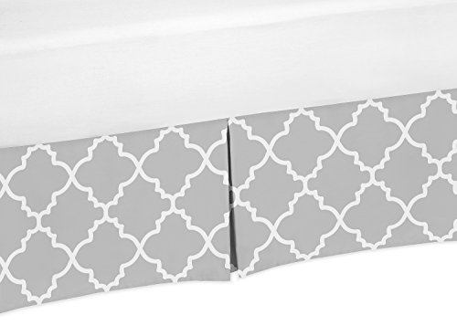 Gray and White Crib Bed Skirt Dust Ruffle for Girls or Boys Gender Neutral Trellis Collection B...