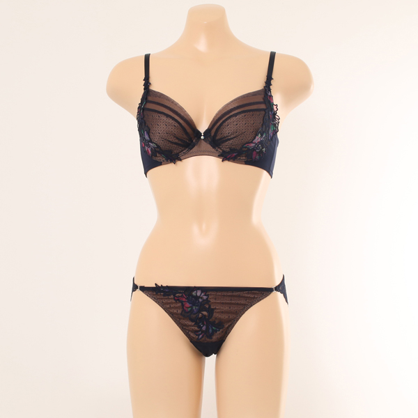 핀턱 디테일의 망소재와 여성미를 더한 도트망이 조화를 이루며