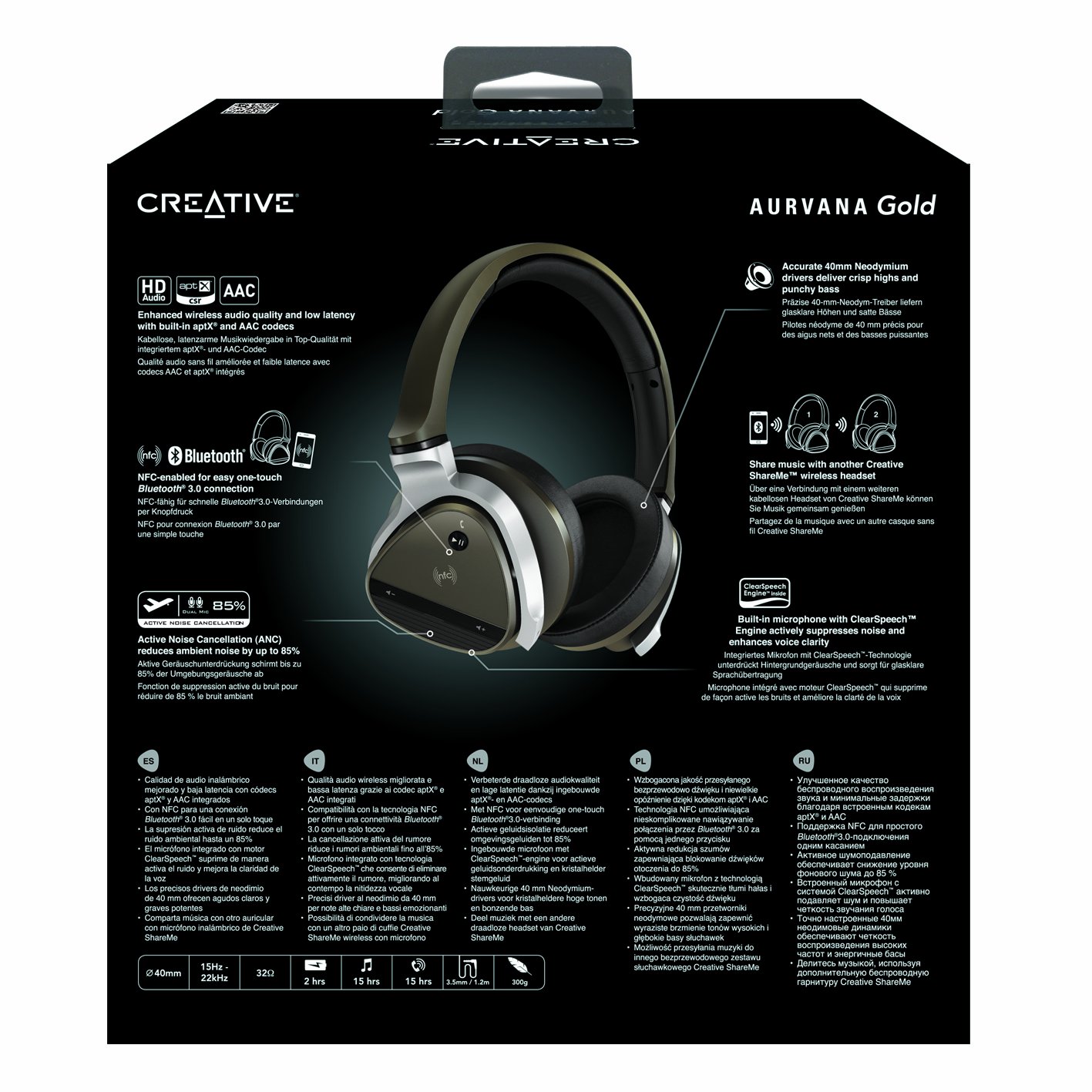 40 mm neodymium magnet driver and NFC compatible Bluetooth headset with active noise cancellation function with noise reduction performance up to about 85% (in case of our measurement condition)