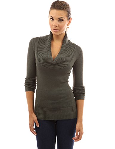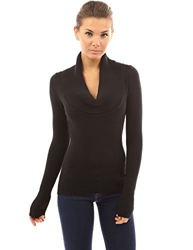 PattyBoutik Ribbed Cowl Neck Long Sleeve Pullover Knitwear Jumper. Model in pictures is 5 feet 8 inches (173cm) tall.