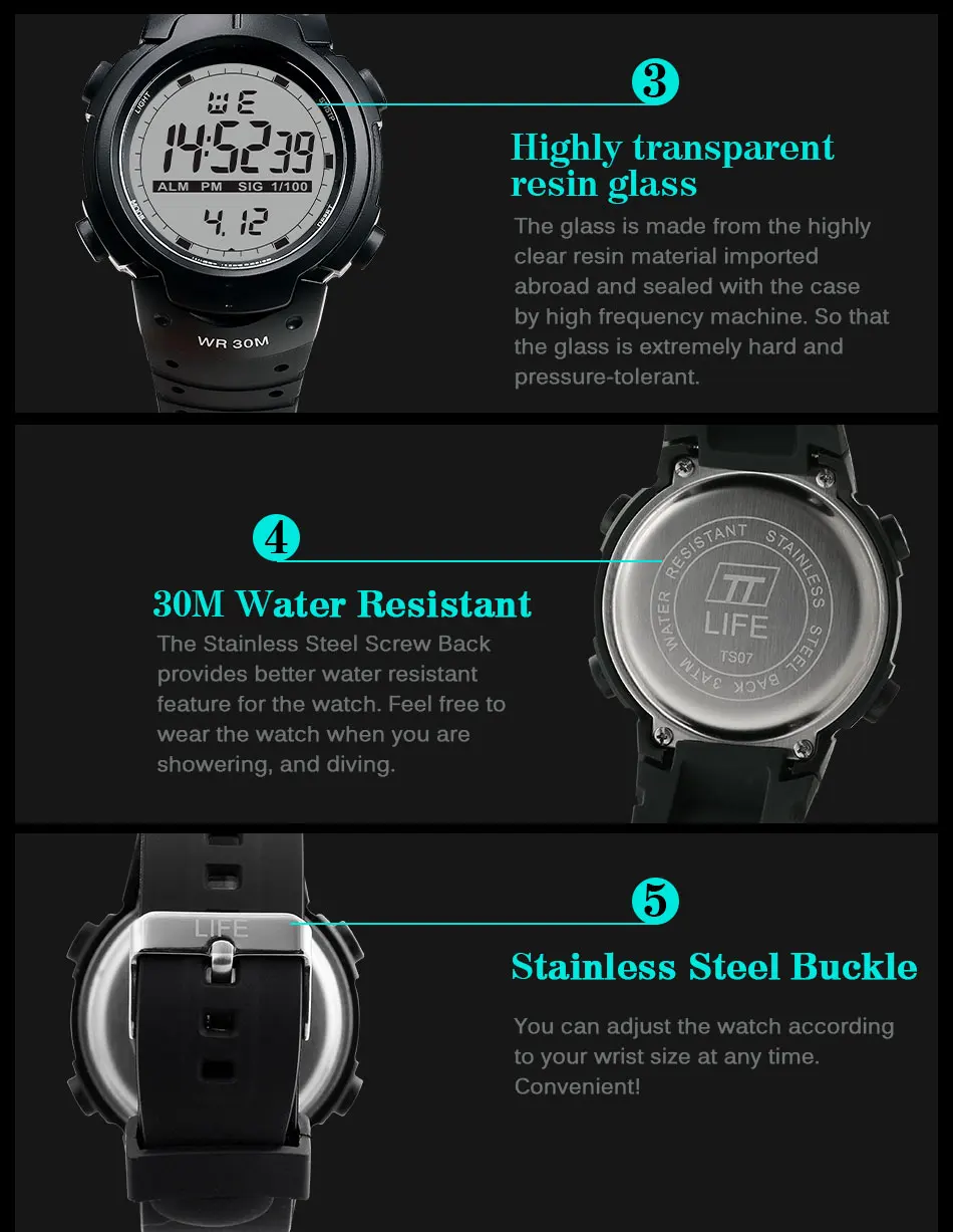 30M Water Resistant:The stainless steel screw back provides better water resistant feature