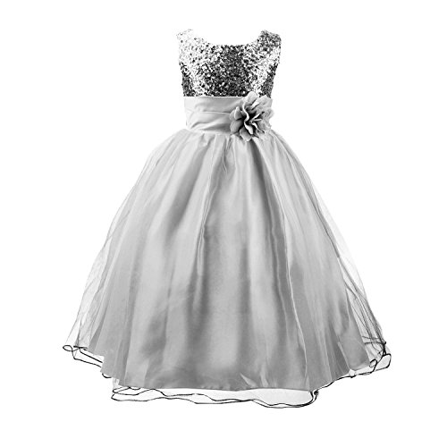Shining sequins and tulle lace layered dress with delicate flower and bow make your sweet princess to be the most graceful and shining girl in the crowd