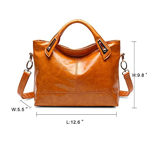 -. Feature : High-quality nubuck leather, lining inside, top zipper closure, creative tassel zipper, exquisite workmanship / Large capacity, can accommodate your daily necessities easily, such as: your mobile phones, wallets, IPAD, cosmetic bags, umbrellas and so on. In addition, there are four separate pockets on the outside, and also have many built-in multiple partitions, keep your bag clean and tidy at any time / The bag comes with a removable and adjustable long shoulder strap, can be usd as a roomy multi function handbag/shoulder bag/tote bag/cross body bag/briefcase / Simple, fashion and retro style, suitable for your dating, working, traveling and so on / Dimensions: L-12.6'', W-5.5'', H-9.8'' (Length of handle: 2.75'')