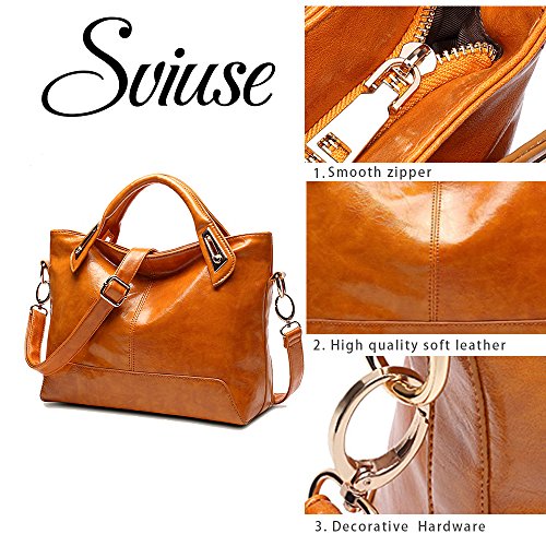 -. Title : Sviuse Women's Vintage Top Handle Satchel Handbags Casual Faux Leather Tote Shoulder Bag(005, Brown)