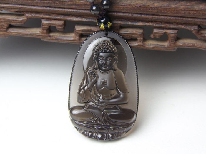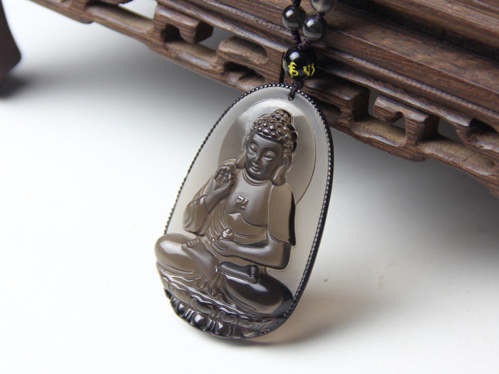 开光天然冰种黑曜石本命佛挂件 阿弥陀佛菩萨生肖狗猪守护神