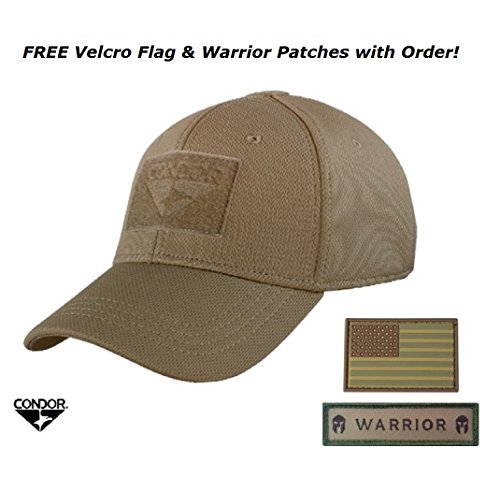 -. Feature : 6 panel flexible jersey fitted material, Embroidered eyelets, & seamed front panel w/ full buckram / Integrated elastic flex-fit sweatband for sure comfortable fit & reinforced stitching / Front hook-&-loop patch panel with embossed Condor Logo and Top & Rear patch panels / Available in Two Sizes: Sm/Med: 7" - 7 3/8" or Lrg/XLrg 7 3/8" - 7 ¾" / Available in 8 distinctive colors: Graphite, Black, Brown, Genuine MultiCam®, OD Green, Tan, Genuine MultiCam Black®, Genuine Kryptek TyphonTM / 2 FREE Velcro Patches with Purchase!: One PVC MultiColor Flag Patch (3" x 2" Dimensions) & One Stitched MultiColor Warrior Patch (1" x 3 ¾" Dimensions).