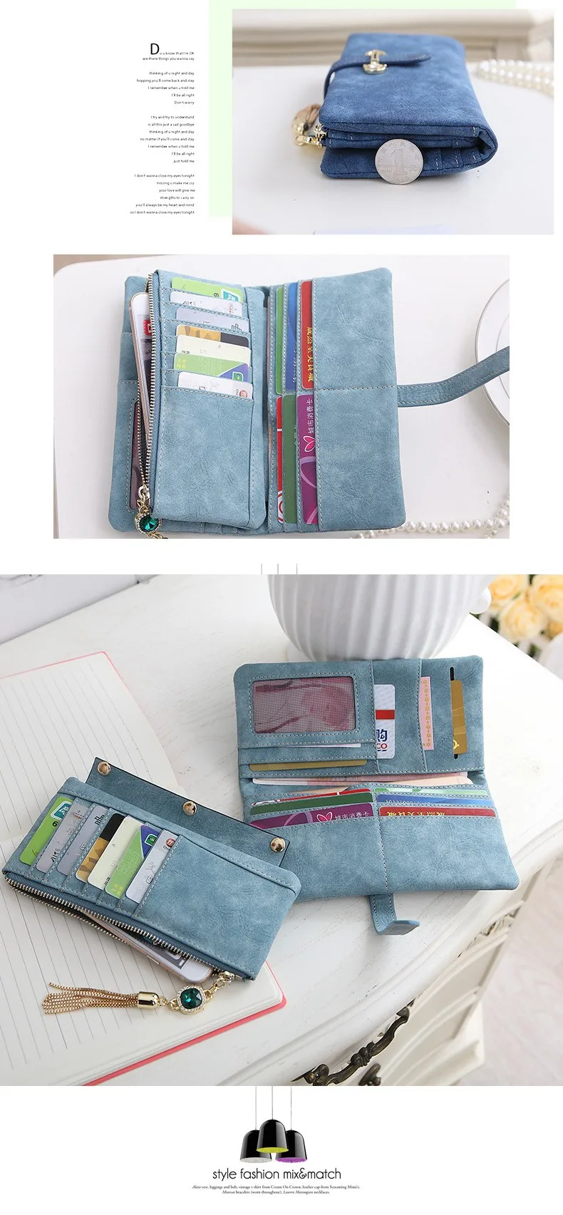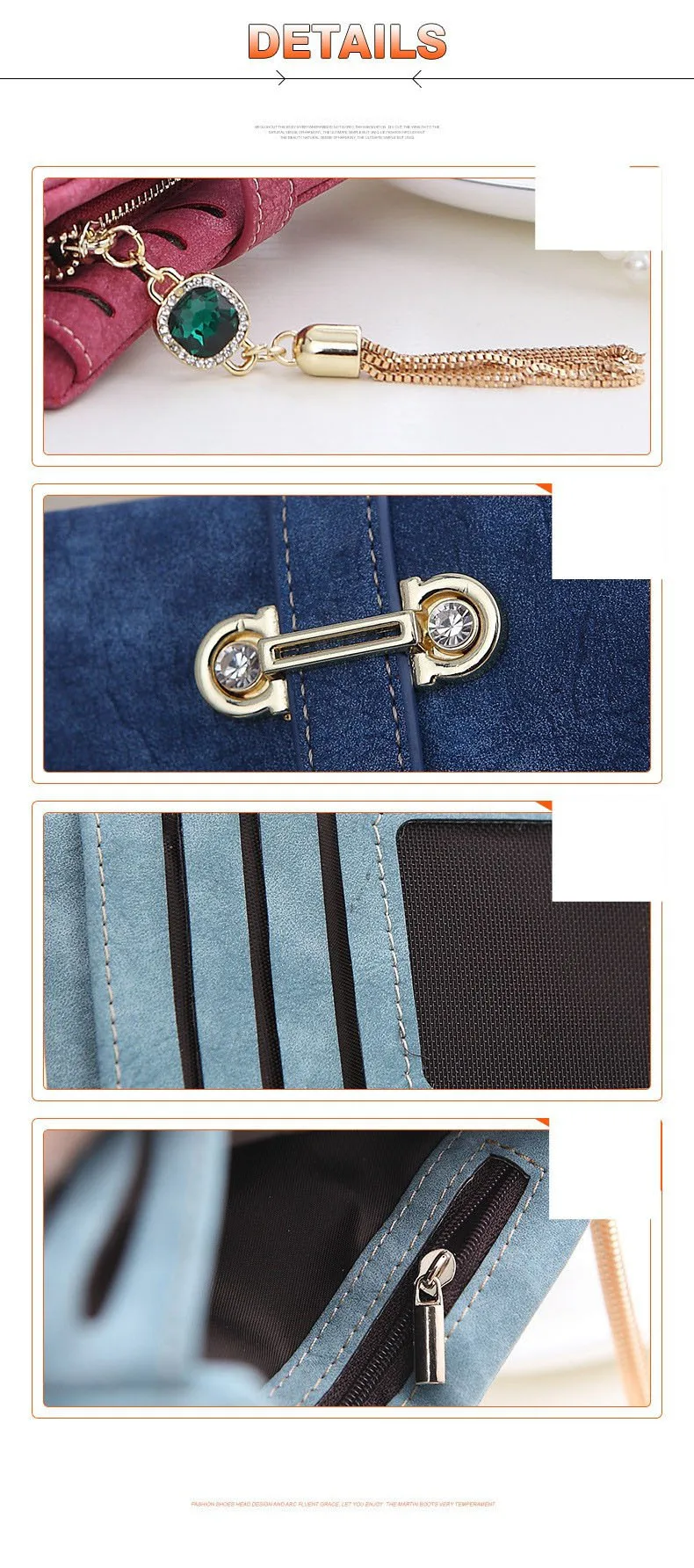 Interior:Zipper Poucht,Interior Compartment,Interior Slot Pocket,Coin Pocket,Card Holder,Photo Holder,Note Compartment,Interior Key Chain Holder