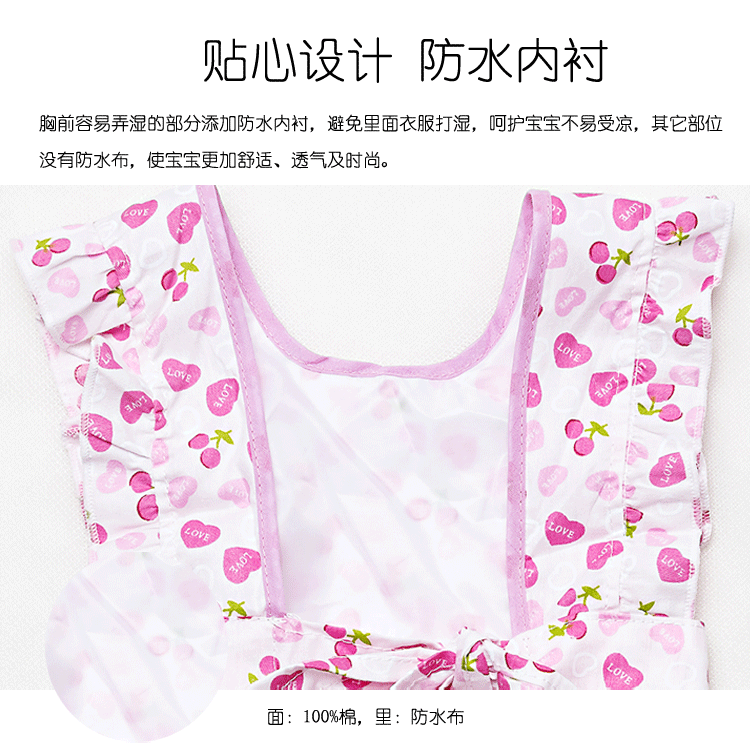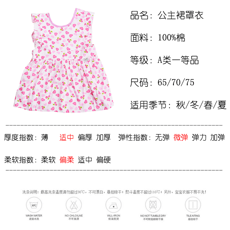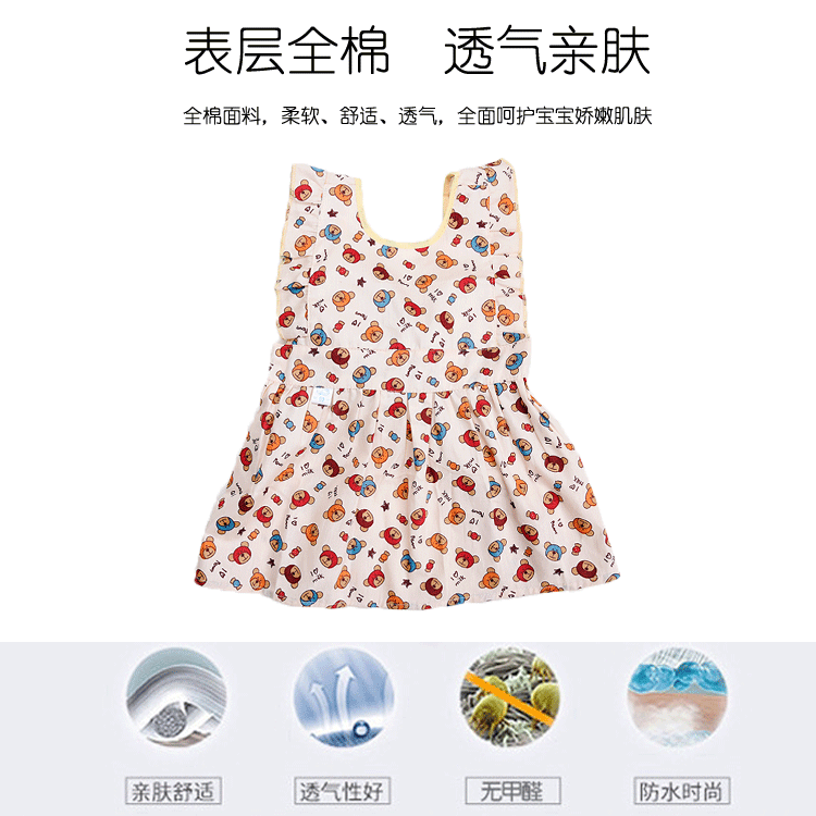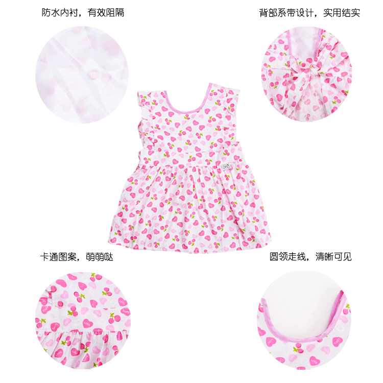 表:100%棉,里,防水布。公主裙罩衣,多色入选,男女宝宝都可用哦!