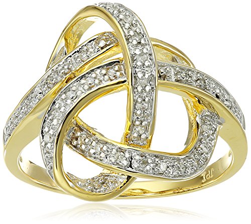 Yellow Gold Plated Sterling Silver Ribbon Diamond Ring (1/10 cttw, I-J Color, I2-I3 Clarity), Size 7