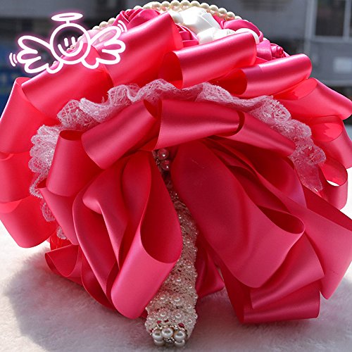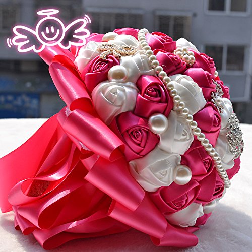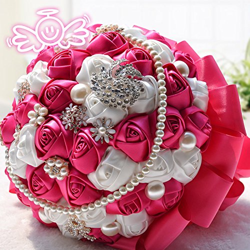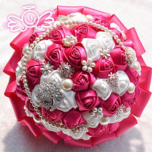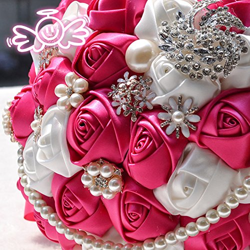 - Title : Hestian 8" Luxury Handmade Romantic Silk Roses with Flower Shape Deluxe Diamonds, Pearls Chains and Lace Handle Rose Bridal Wedding Bouquet Silk Rose Hand Tie (hot pink)