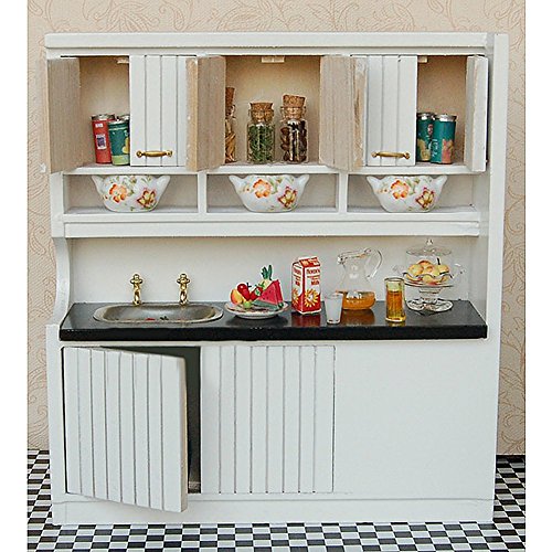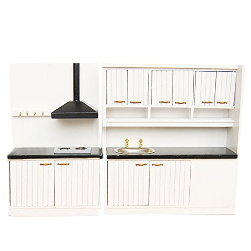 -. Feature : Material: wood. Color: white / Including: 1x sink cabinet, 1 x range hood cabinet, other ornaments are NOT included. / Measurement: (LxWxH) 16.5x4.7x18.5CM/6.50x1.85x7.28inch ; range hood: 11x4.7x18.5CM/ 4.33x1.85x7.28inch / Beautiful design and excellent workmanship / Suitable for 1:12 doll house