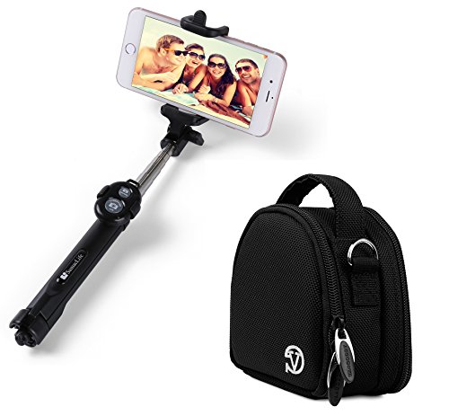 -. Feature : Fine Nylon Material on Camera Case. Top handle lets you carry with comfort. Holds cameras/camcorder and other additional accessories. Padded camera compartment to provide superior protection . Rear pockets allow fast access to accessories: SD Memory Cards, Cables, Charger etc. Adjustable, removable shoulder strap with extra padding / Approximate Exterior Case Dimensions: 4.75" X 4.75" X 2.5" inches. Approximate Camera Compartment Dimensions: 4.25" X 3.6" X 2.0" inches / The selfie stick has 270 degree adjustable head: The mount at the top of the selfie stick can be positioned at any point through a 270 degree arc, allowing you to adjust the position according to the specific shot you are taking. Light and compact, this selfie stick is 7.5 inches long when retracted, and 27.5 inches when fully extended. Extendable and stable selfie stick with ergonomically designed handle. / With a standing tripod stand, you can easily take pictures in longer distance with better freedom of posting. Extendable and stable selfie stick with ergonomically designed handle. Includes a removable Bluetooth remote control and wrist strap / Fits Garmin VIRB Ultra 30 Action Camera. You will receive the vangoddy camera case and the bluetooth selfie stick with tripod stand.