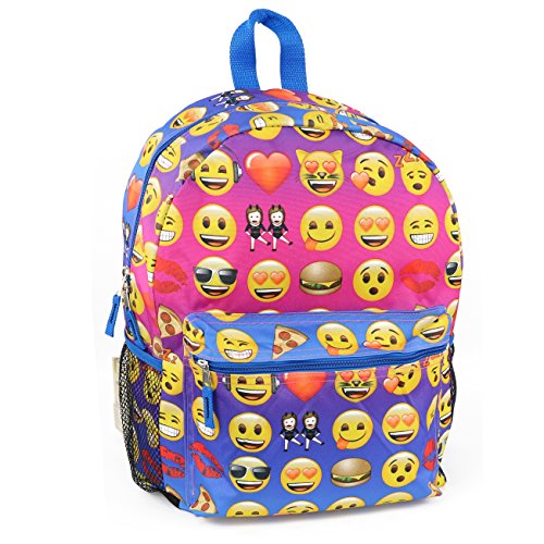 -. Feature : Emoji All Over P.R.Int Backpack / Durable Polyester construction / Zippered closures / Large main compartment, Front zipper compartment, and two mesh side pockets / 16 Inch backpack with adjustable shoulder straps