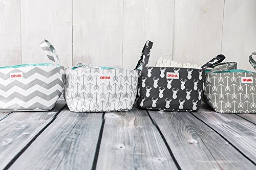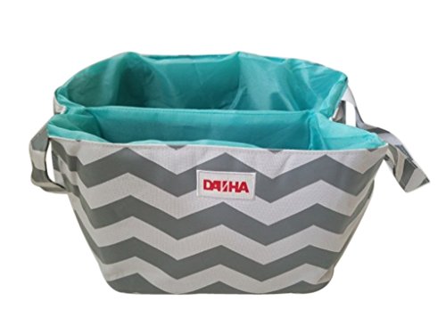 Diaper Storage Caddy By Danha – Portable Diaper Bag And Stacker With Beautiful Grey White Chevron Unisex Design – Changing Table Storage Basket And...