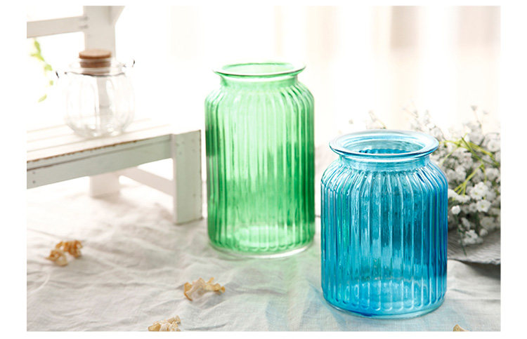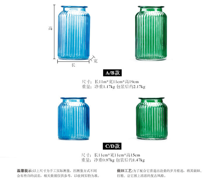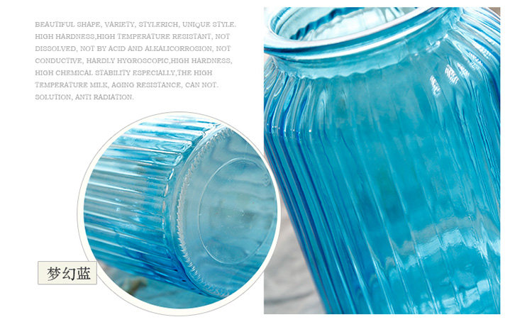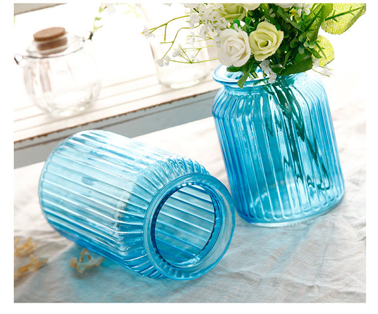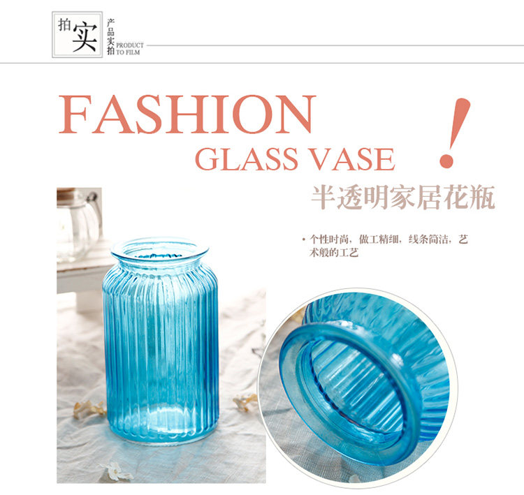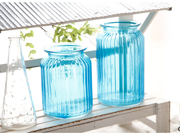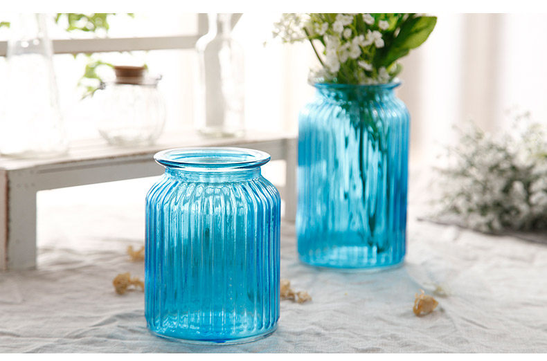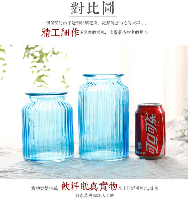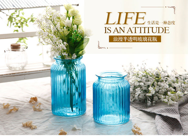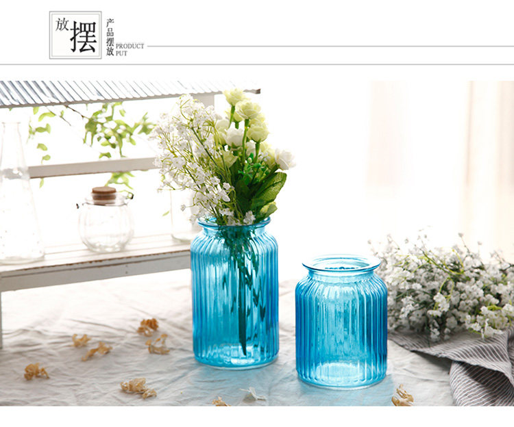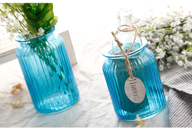 zakka田园创意蓝色插花花瓶玻璃透明水培客厅餐桌干花装饰品摆件