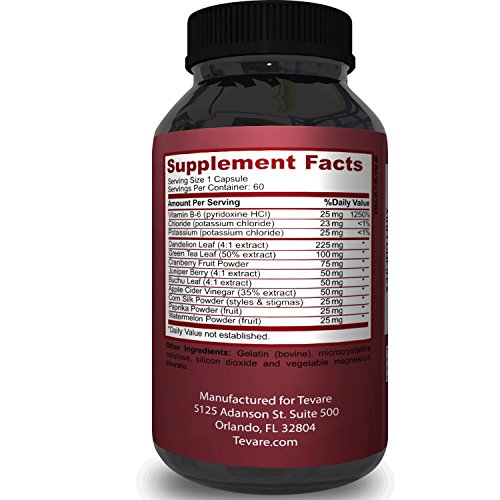-. Binding : Health and Beauty -. Brand : Tevare -. EAN : 0793579821939 -. Feature : WATER PILLS are a great way to keep balanced water and sodium levels - Diuretic helps with diet and exercise - Can help you lose weight - Reduce Bloating - Boosts metabolism and Immune system / Vitamin B-6 - Vitamin B6 or pyridoxine is part of B complex vitamins which plays an important role in converting food into energy and helps the body metabolize fats and is great for immune system / Potassium Chloride - Potassium plays a significant role in the maintenance of an optimal fluid balance in the human body - It also assists in the metabolic processing of nutrients / Dandelion - Dandelion leaf root has high antioxidant properties and plays a role in maintaining healthy vision - neurological function - healthy skin - aids the digestion system and more / Buchu plant - The leaves of the buchu plant are a fantastic source of minerals antioxidants flavonoids and vitamins and is one of the top natural health remedies -. IsAdultProduct : 0 -. Label : Tevare -. Manufacturer : Tevare -. MPN : LE -. PackageQuantity : 1 -. PartNumber : LE -. ProductGroup : Health and Beauty -. ProductTypeName : HEALTH_PERSONAL_CARE -. Publisher : Tevare -. Studio : Tevare -. Title : Premium Water Pills Diuretic Natural & Pure Dietary Supplement for Water Retention Relief Weight loss Detox Cleanse for Men & Women with Vitamin B-6 Potassium Chloride Dandelion Root by Tevare -. UPC : 793579821939