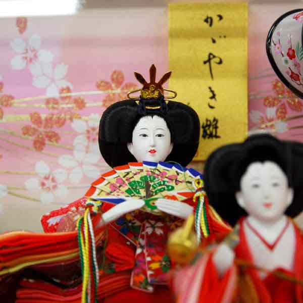 ・親御様、お子様、縁者様の健康と発展を願いながら職人が丁寧に仕上げた雛人形飾り/雛人形が初節句のお祝いにはなを添えます。