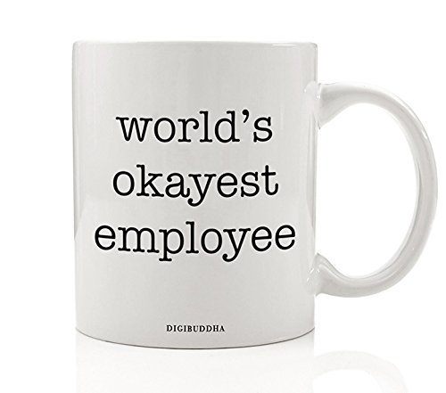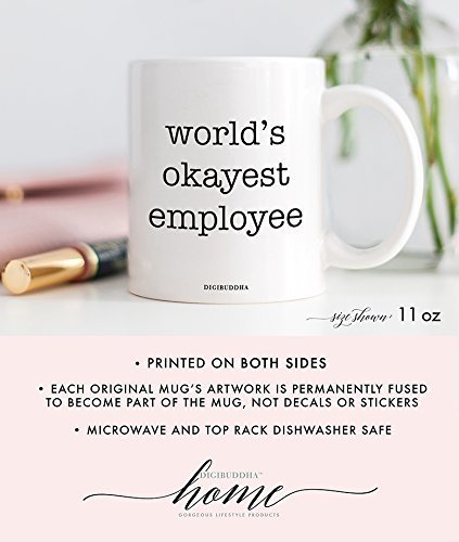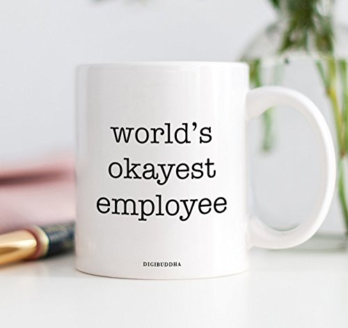 -. Title : World's Okayest Employee Mug, Funny Humor Sarcasm Work Office Quote, Sarcastic Present White Elephant Christmas Birthday Gag Gift Idea for Coworker Him Her 11oz Ceramic Coffee Cup by Digibuddha DM0322