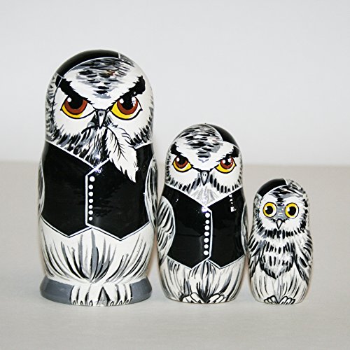 -. Title : Nesting dolls clever owl. Russian matryoshka owls for kids, gift, decorate, bird. Signed