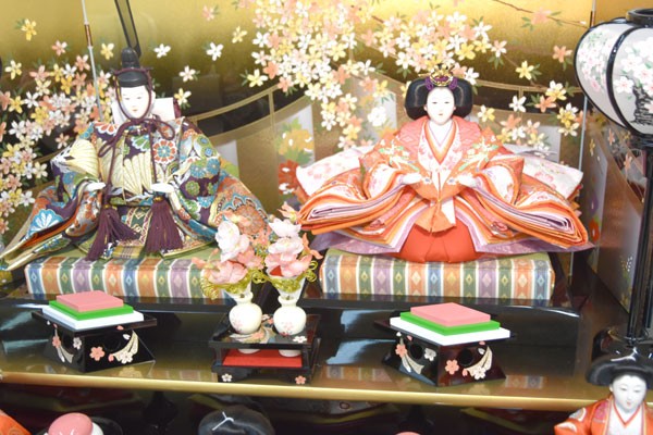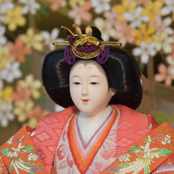 親御様、お子様、縁者様の健康と発展を願いながら職人が丁寧に仕上げた雛人形飾り/雛人形が初節句のお祝いにはなを添えます。