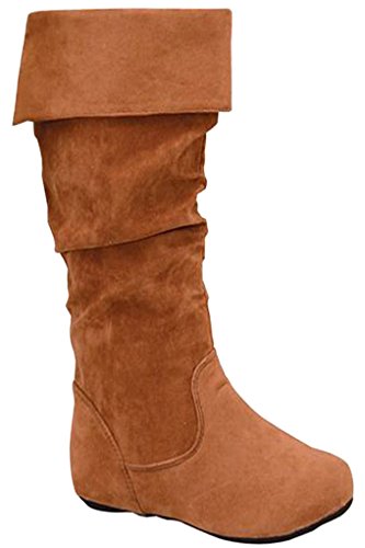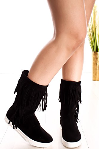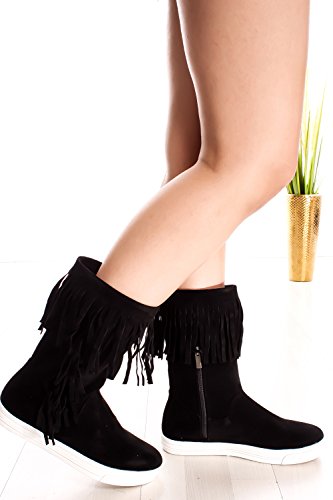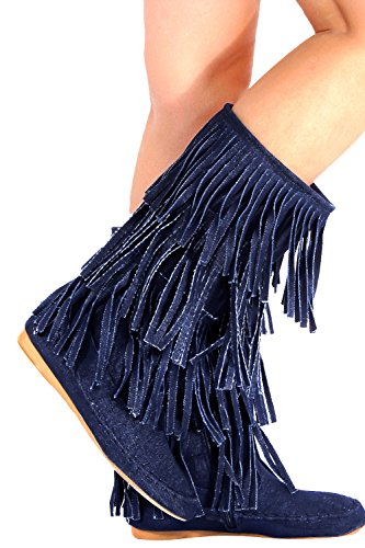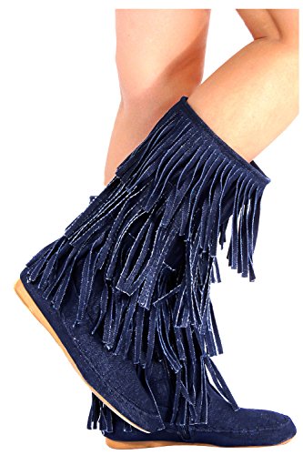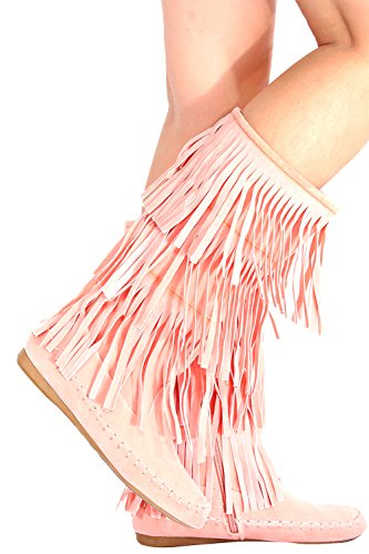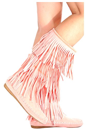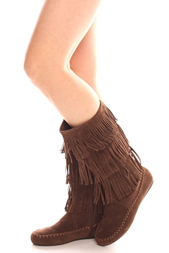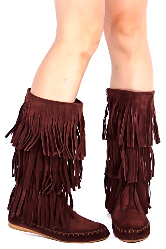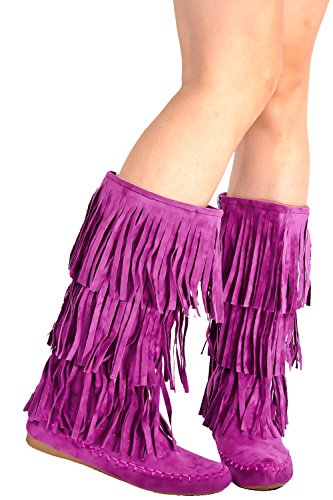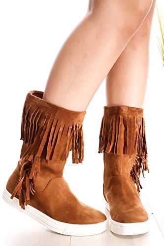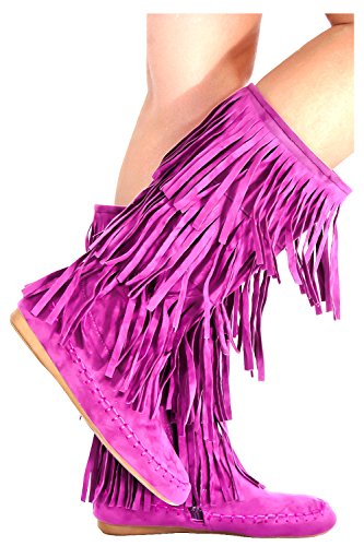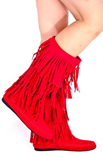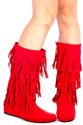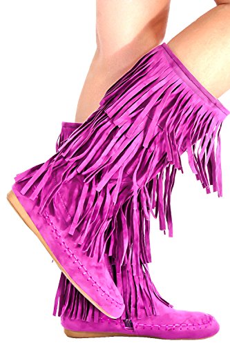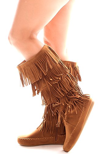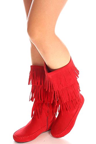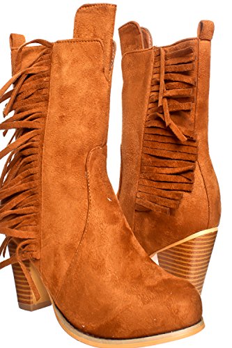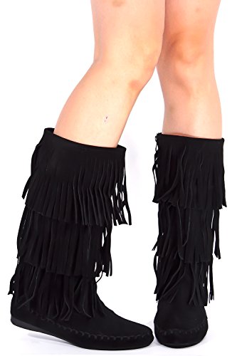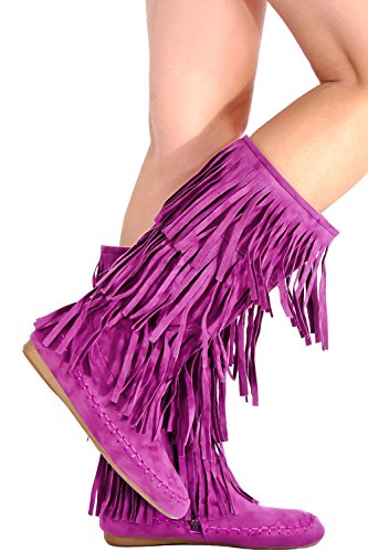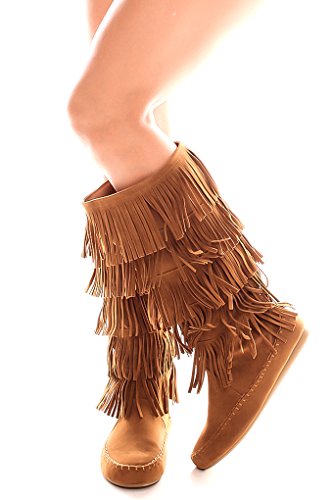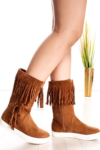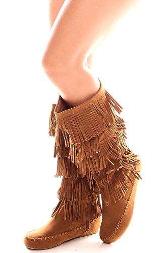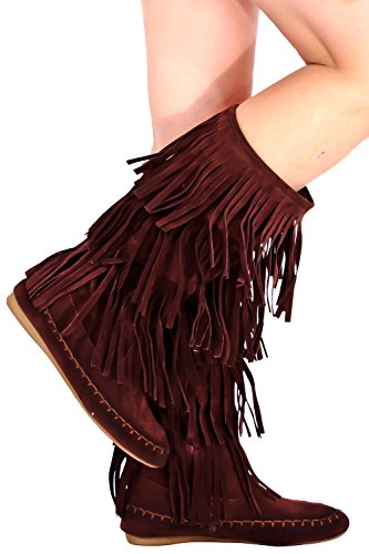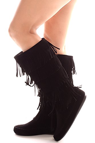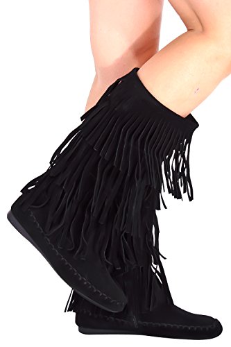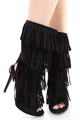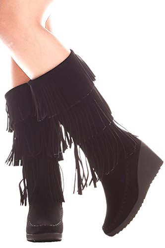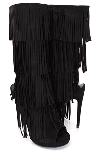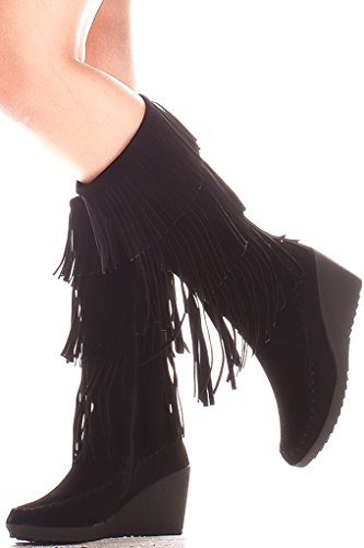 | Young Aloud TOP FRINGE LOOK FRONT LACE DESIGN FAUX LEATHER MATERIAL KNEE HIGH BOOTS |