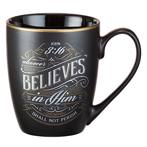 Christian Art Gifts Mug - Whoever Believes in Him, Matte Black Gilded