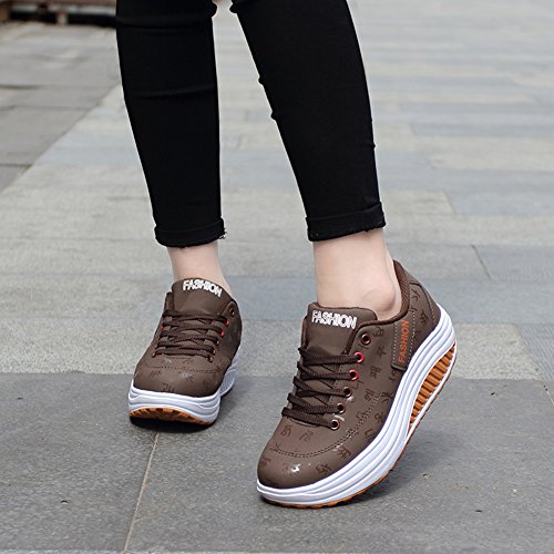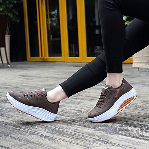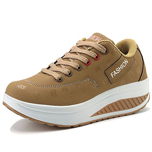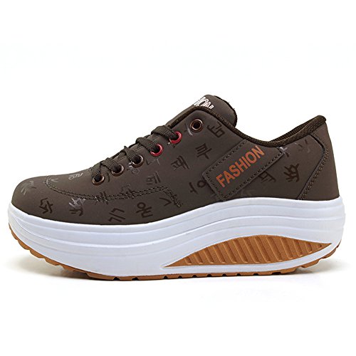 Binding : Apparel Product Description HKR Women Light Weight Shape Up Walking Shoes Korean Pattern Platform Wedge Slimming Work Out Sneakers Adjustable lac eup This shape ups shoes have an unstable, strongly curved sole. Walking in them is akin to exercising on a balance or wobble board in the gym or barefoot along a sandy beach. These shape up walking shoes can also change your posture and gait and reduce the pressure of spinal. The platform walking sneakers use super light and anti-slip PU soles. Walking and movement, breathable, absorb sweat, comfortable and relaxed. Great for Fitness,toning,walking,exercise,workout,traveling,shopping,weight loss,slimming,work,leisute. Extremely comfortable to wear. You can walk in these platform fitness/toning/work sneakers for hours without any feet pain, your legs feel light and rested and your sole will not hurt. Black,blue,tan,red,dark brown for choose.Optimal choice for all-day wear along with leisure indoor and outdoor activities. Please allow slight color difference due to different camera or light environment! Size Information US Size 5.5 B (M) = Heel to Toe 8 7/8 inch(22.5cm) = China Size 35 US Size 6 B(M) = Heel to Toe 9 inch(23cm) = China Size 36 US Size 6.5 B (M) = Heel to Toe 9 1/4 inch(23.5cm) = China Size 37 US Size 7 B (M) = Heel to Toe 9 1/2 inch(24cm) = China Size 38 US Size 7.5 B(M) = Heel to Toe 9 5/8 inch(24.5cm) = China Size 39 US Size 8 B (M) = Heel to Toe 9 7/8 inch(25cm) = China Size 40 US Size 8.5 B (M) = Heel to Toe 10 inch(25.5cm) = China Size 41 US Size 9 B(M) = Heel to Toe 10 1/4 inch(26cm) = China Size 42 0