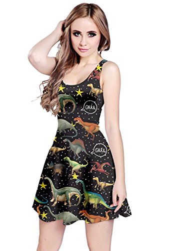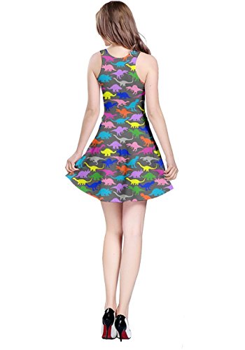 CowCow Womens Colorful 2 A Pattern With Dinosaur Silhouettes Sleeveless Dress, 2 - 3XL
