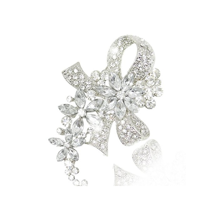 에버 페이스 (EVER FAITH) [에버 페이스] EVER FAITH 찬란한동 오스트리아《》 크리스탈 품위가 있는 엘레강트(elegant) 결혼식 웨딩 브라이들 플라워 리본의 모티브 broach 클리어 실버 톤 [